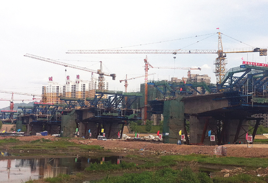 承秦高速下板城连接线滦河大桥工程正紧张施工。该工程长602米,桥面宽24米,最大跨径80米,目前已经完成50%,预计10月末全桥竣工。