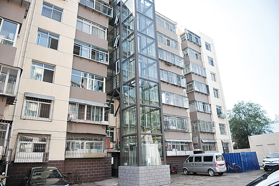 图为双桥区柴场小区加装的电梯。记者 琦嘉 通讯员 木子 摄