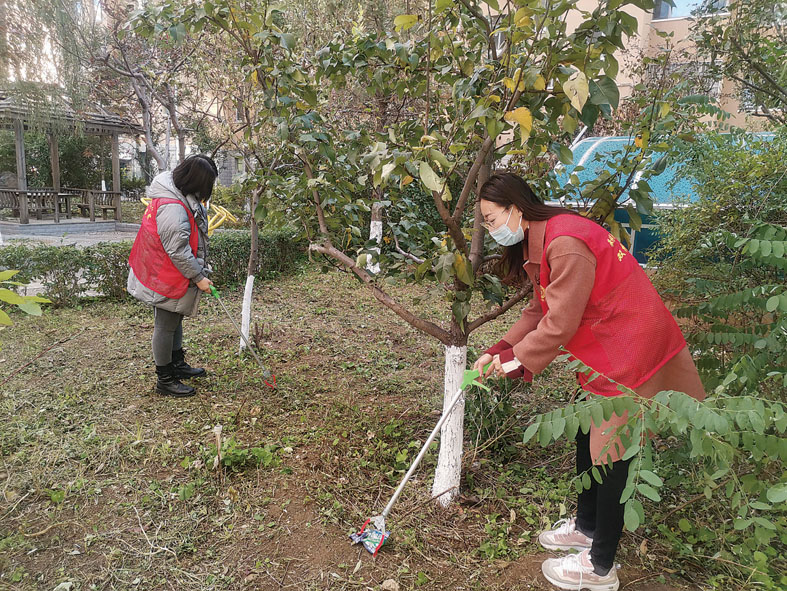 今年,我市持续加大环境卫生整治及老旧小区改造提升行动,助力全国文明城市创建。图为双桥区营房社区志愿者正在清理辖区卫生环境。本网记者 陈相旭 摄