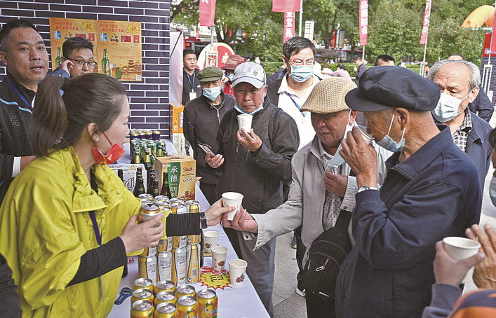 开幕仪式后,为期5天的展销会正式开始。展销会共分成四个区域,展销三大类产品,分别为以承德农副产品和土特产品为主的食品区;以承德区域白酒、米酒及其他饮品为主的酒水饮料区;以承德旅游商品、特色旅游纪念品为主的文创产品区等。四海啤酒、恒全油业、三源生态米业、小承大德、乐野食品、露露、神栗食品、酒全酒美酒水商城等50家本土企业派出展销团队。现场氛围热烈,活动有序进行,众多市民前来驻足品鉴和购买。