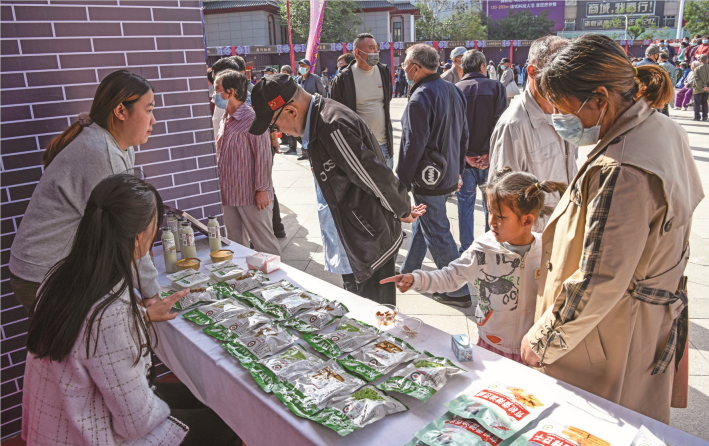 市民在展台前品尝承德特色农产品。本报记者陈琦嘉王立群摄
