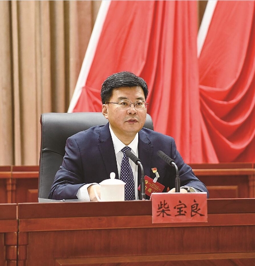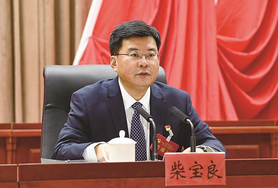 12月28日,中国共产党承德市第十五届委员会第四次全体会议在市行政中心召开。图为市委副书记、市长柴宝良代表市委常委会讲话。本网记者陈相旭摄
