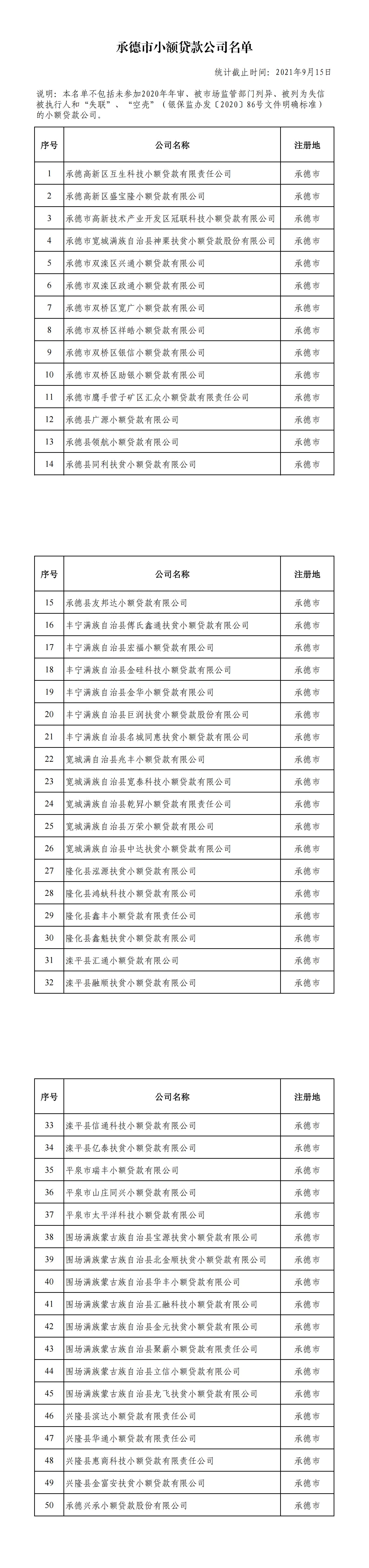 为进一步扩大人民群众对地方金融的知情权、参与权,营造良好的地方金融消费环境,维护企业和人民群众合法权益,现根据地方金融组织准入、退出、监管等工作实际,对截至2021年9月15日的地方金融组织名单予以公布。