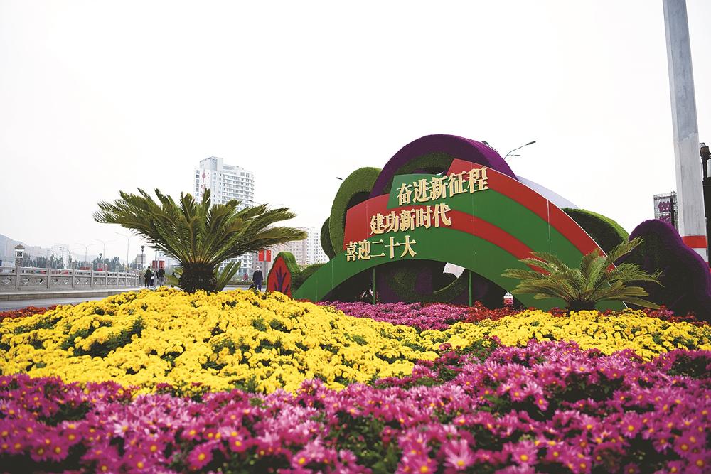 本网讯(记者张丽莉)金秋十月迎国庆,举国欢腾庆华诞。在党的二十大即将召开之际,迎来了中华人民共和国73周年华诞。漫步在城乡街头,各具特色的景观小品,吸引着市民和游客纷纷打卡;干道沿途挂满国旗,鲜艳的五星红旗随风飘扬;造型各异的鲜花绿植,寄托着人们对美好生活的向往;随处可见的标语口号,表达了对党的无限热爱、对祖国的美好祝福……紫塞大地处处呈现出一道道亮丽的风景线,整座城市沐浴着幸福的“中国红”。