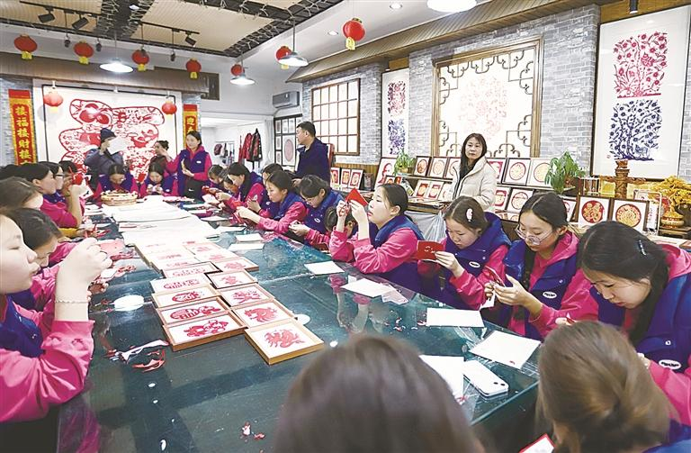在承德避暑山庄,他们驻足于烟雨楼前,凝视着“一池三山”的造园格局,在导游的讲解中感悟中国传统园林。登上金山岭长城,抚摸着历经沧桑的城砖,听着戍边将士的历史传说,仿佛触摸到了中华民族坚韧不拔的精神血脉。走进俊凤剪纸艺术馆,他们围在非遗传承人身旁,手持剪刀小心翼翼地裁剪着红纸,当一张张精美的剪纸作品在指尖成型,眼中满是对这项东方技艺的惊叹与喜爱。这些沉浸式的研学体验,让深厚的中国文化变得可触、可感、可亲。