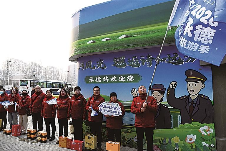 当列车缓缓驶入隆化站,一场浓缩着承德地域特色的文化展示活动精彩上演。站台上2025/2026河北承德冰雪温泉旅游季主视觉背景板格外醒目,26项重点文旅活动与5条精品旅游线路的图文展板一字排开,宛如一张生动的“承德冬季旅游地图”。国家级非遗项目《二贵摔跤》诙谐登场,演绎出民间智慧与生活情趣;围场蒙古族歌舞队献上马头琴演奏与长调合唱,苍茫悠远的旋律,仿佛将人带回辽阔草原的雪夜深处。
