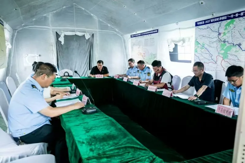 “我驾驶的危险化学品罐车在丰宁满族自治县南大道附近突然被后车追尾,罐体受损。请你们赶紧来救援!” 7月11日, “环境应急·2025”潮河流域(承德段)“一河一策一图”突发环境事件应急演练”在丰宁举行。