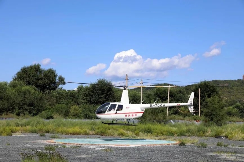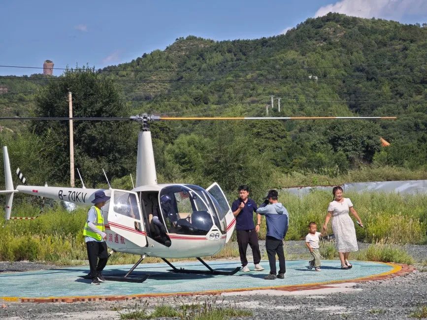 在承直飞行营地,游客们体验直升机空中游览项目。王宗楠摄