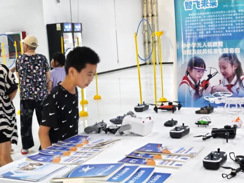 在天九通航(承德)低空经济总部基地,小朋友们在参观无人机。秦晶晶摄