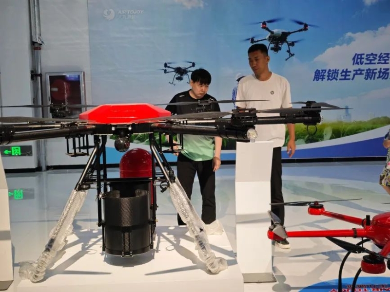 在天九通航(承德)低空经济总部基地,当地市民在参观无人机。秦晶晶摄