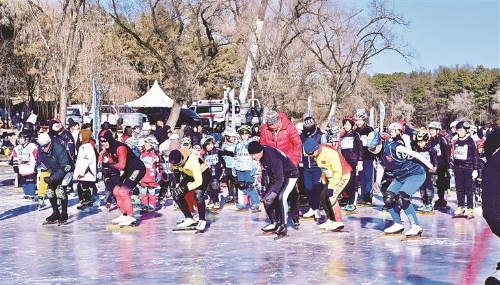1月11日下午,“畅享塞外冰雪·燃动热河激情”承德冰嬉大典冰上马拉松赛在避暑山庄室外冰场圆满结束。这场以完赛体验为核心的非竞技类冰雪盛会,吸引了广大冰雪运动爱好者齐聚一堂,在天然冰面上尽情挥洒活力,用一场充满欢笑与温暖的冰上奔跑盛宴,为冬日山城奏响温暖乐章。图为比赛现场。