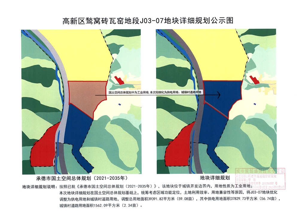 关于公示承德高新区闫营子地段J02-01地块及鹙窝砖瓦窑地段J03-07地块详细规划的通知