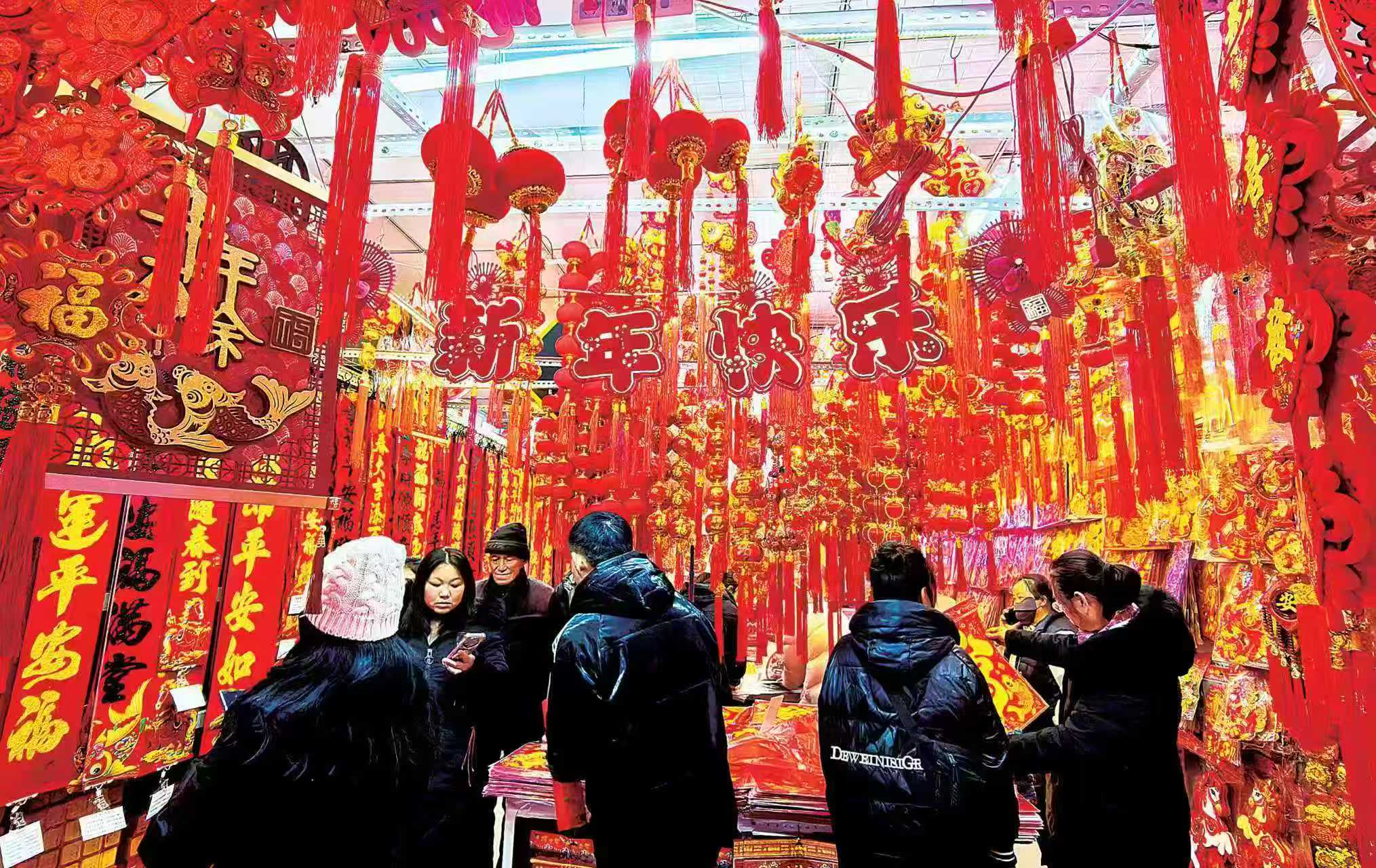 春节将至,年味渐浓。市民纷纷走进年货市场,精心挑选春联和福字,在红红火火的喜庆氛围中,迎接新春佳节的到来。