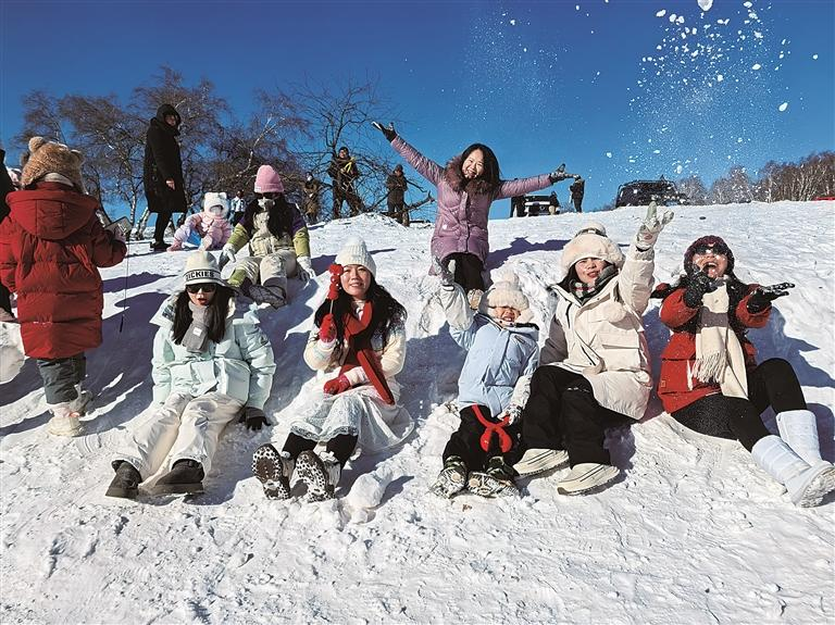 图① 游客在塞罕坝森林公园嬉冰雪。