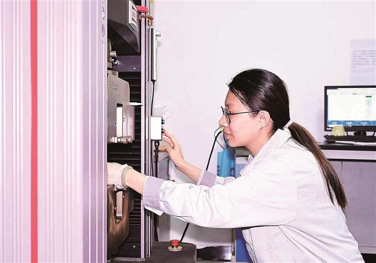 近年来,我市坚持以科技创新赋能产业升级,通过强化产学研深度融合,推动钒钛新材料特色产业向高端化、现代化迈进,为企业高质量发展注入强劲动能。图为双滦区河北美富淦冶金材料科技有限公司技术人员在实验室内进行钒钛新材料测试。