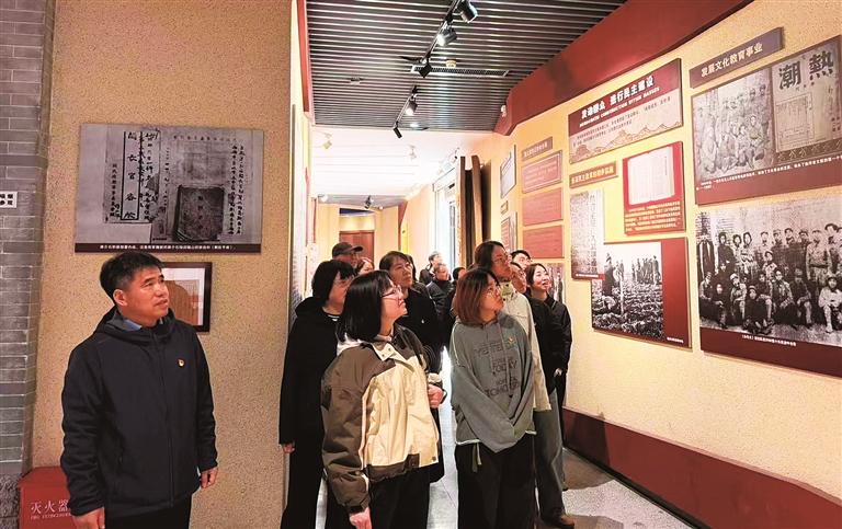 承德市气象局工作人员正在热河革命烈士纪念馆展厅参观。