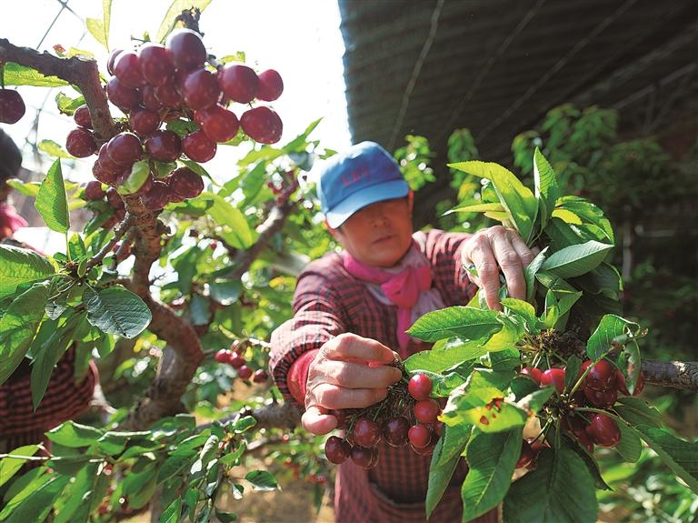 近年来,我市特色种植产业多点开花,从承德县蓝莓到双滦区草莓,从平泉油桃到丰宁暖棚樱桃,一颗颗果实让百姓在家门口实现务工增收、共享产业发展红利,让“棚下经济”真正成为百姓增收致富的强劲引擎。图为丰宁选将营乡二道营村头茬暖棚樱桃抢“鲜”上市。